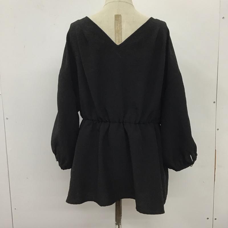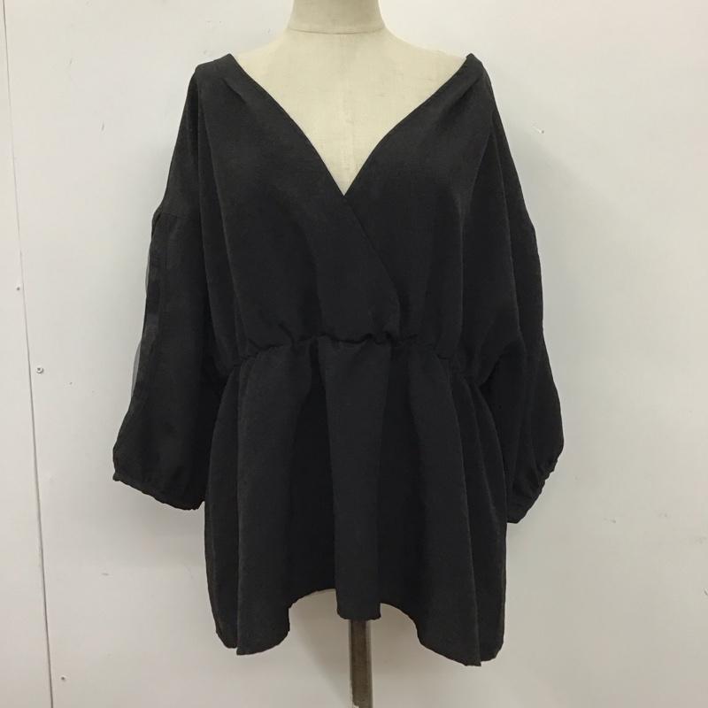 ジーナシス JEANASIS カットソー 半袖 js063443mc カシュクールシャツ ブラウス 七分袖 ペプラム 半袖カットソー FREE 無地 黒 / ブラック / レディース USED 古着 中古 10109562
