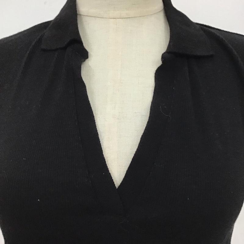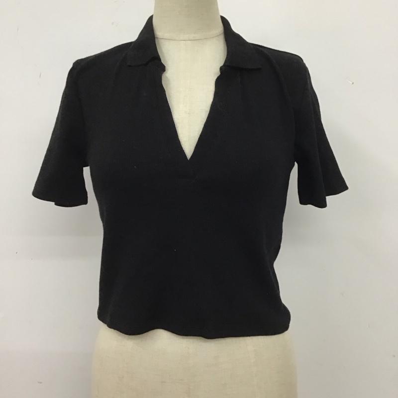 ザラ ZARA カットソー 半袖 1660 318 800 リブ クロップド丈 スキッパー ポロシャツ M 無地 黒 / ブラック / レディース USED 古着 中古 10109661