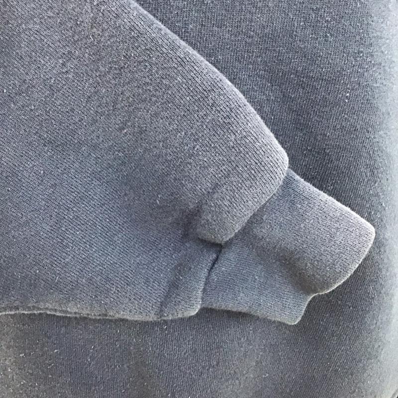 品質表示タグが劣化しています。、全体的に色褪せや毛羽立ち、毛玉があります。、右袖付け根に汚れがあります。