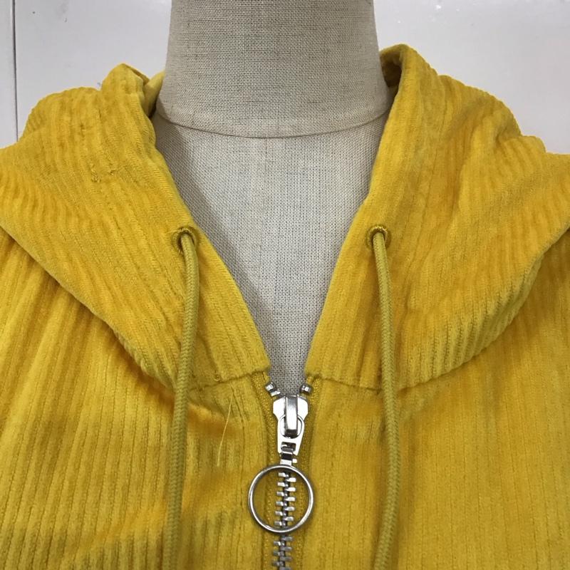 アディダス adidas パーカー 長袖 GU0827 HOODEDTTCORN 長袖パーカー コーデュロイジャケット ジャージ L ロゴ、文字 黄 / イエロー / レディース USED 古着 中古 10110236