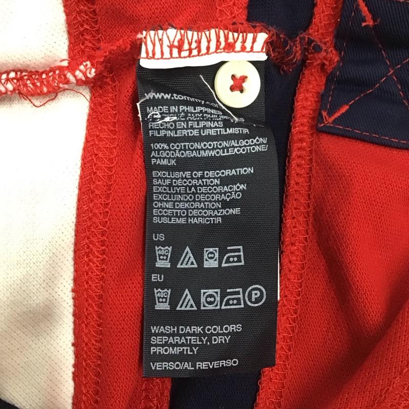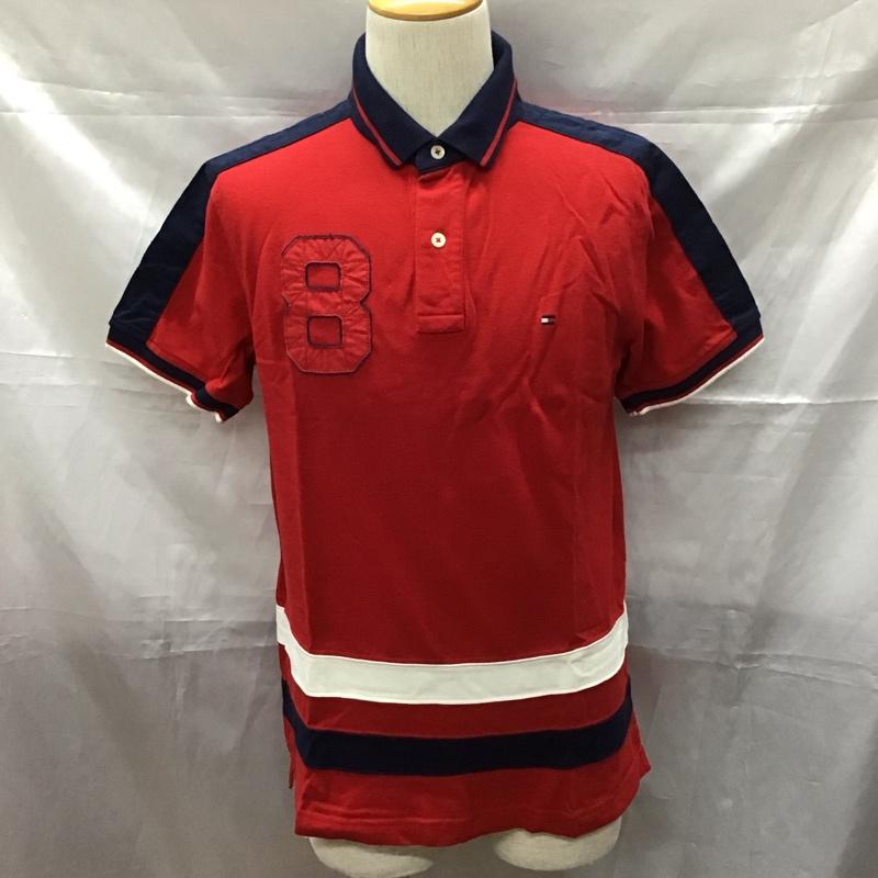 トミーヒルフィガー TOMMY HILFIGER ポロシャツ 半袖 半袖ポロシャツ 半袖カットソー カラーシャツ M ロゴ、文字 赤 / レッド / X 紺 / ネイビー / メンズ USED 古着 中古 10111025