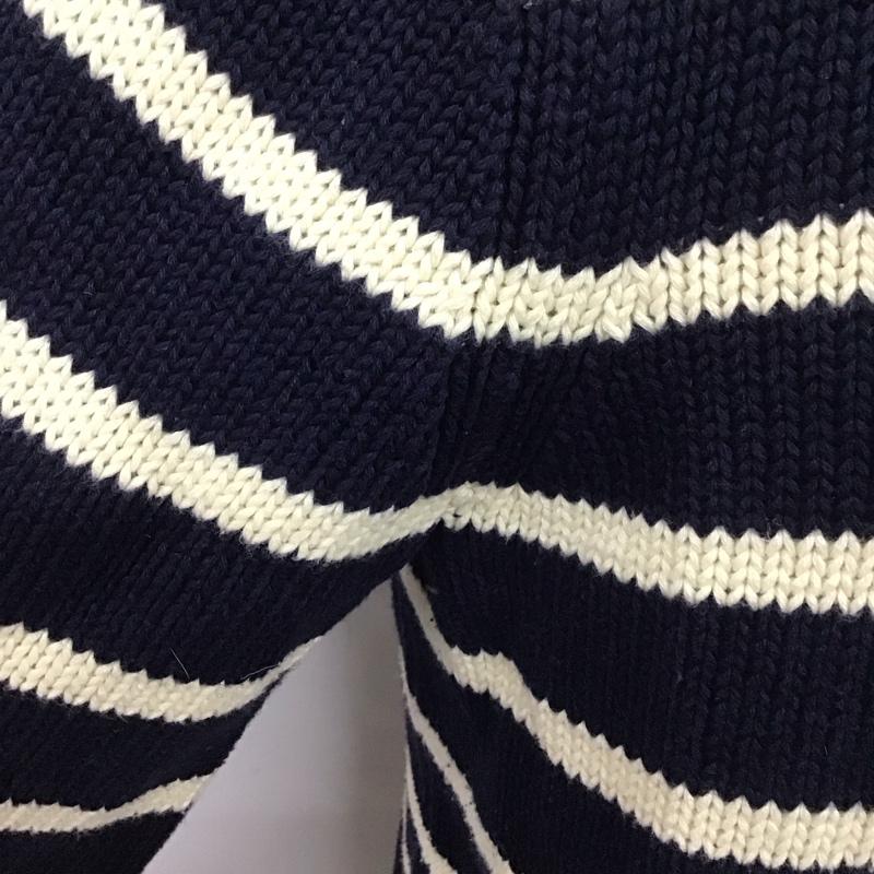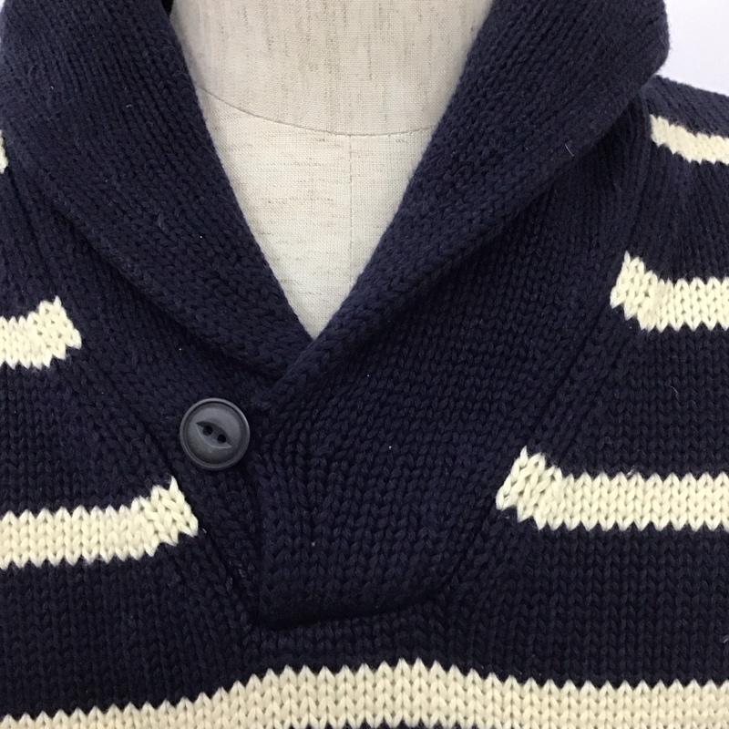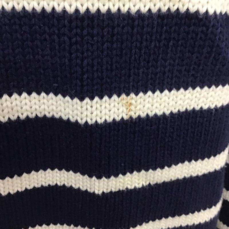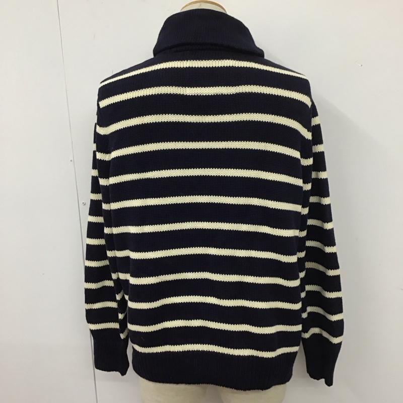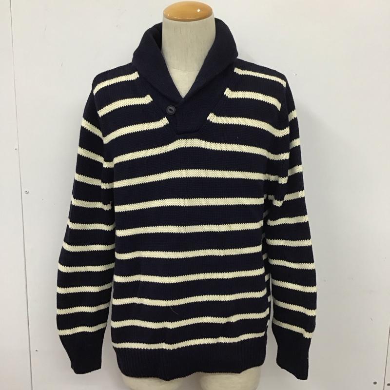 エディーバウアー Eddie Bauer ニット、セーター 長袖 長袖ニット 長袖カットソー リブニット セーター カラーネック M ボーダー柄 白 / ホワイト / X 紺 / ネイビー / メンズ USED 古着 中古 10111133
