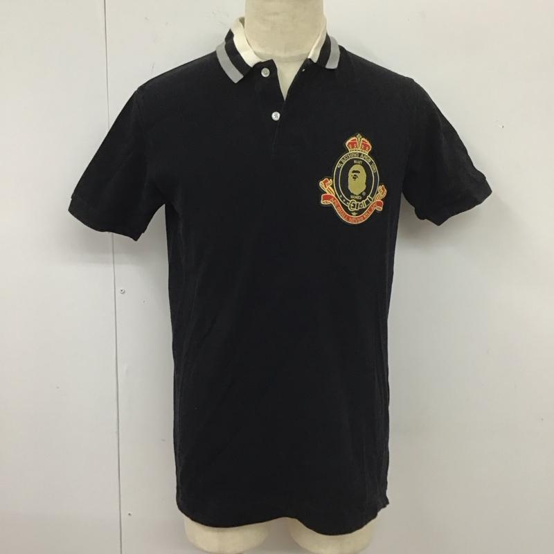 アベイシングエイプ A BATHING APE ポロシャツ 半袖 半袖ポロシャツ カラーシャツカットソー 半袖カットソー M ロゴ、文字 黒 / ブラック / メンズ USED 古着 中古 10112085