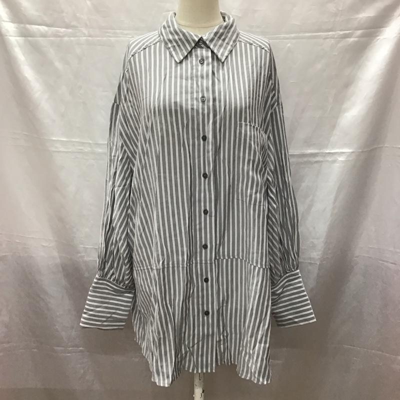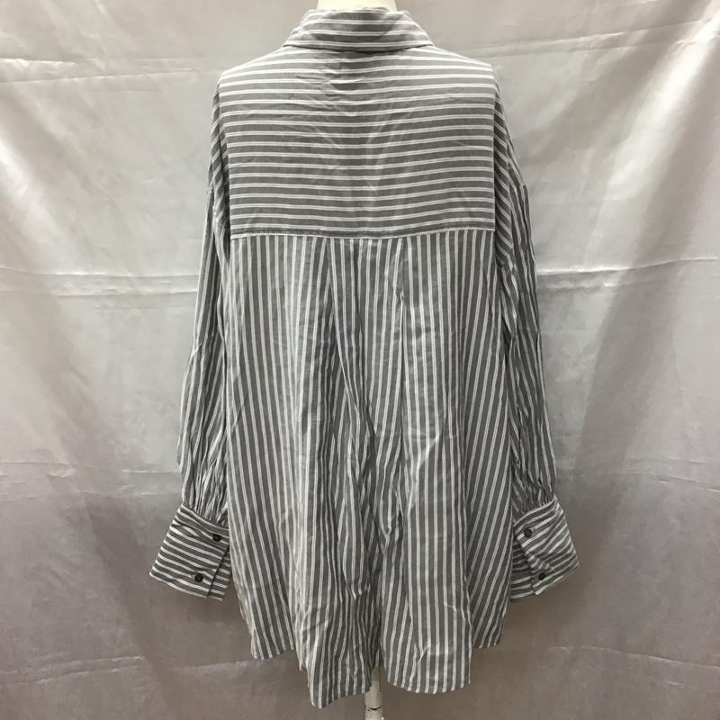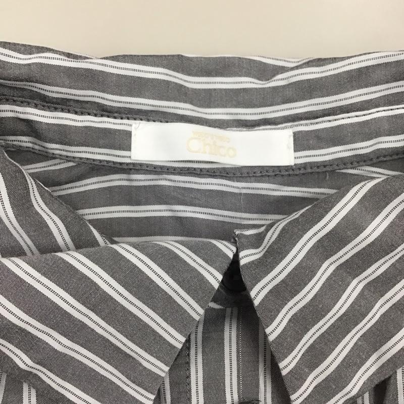 フーズフーチコ who s who Chico シャツ、ブラウス 長袖 CHZ1021304A0014 胸刺繍ブロッキングオーバーシャツ FREE ストライプ 白 / ホワイト / X 灰 / グレー / レディース USED 古着 中古 10112405