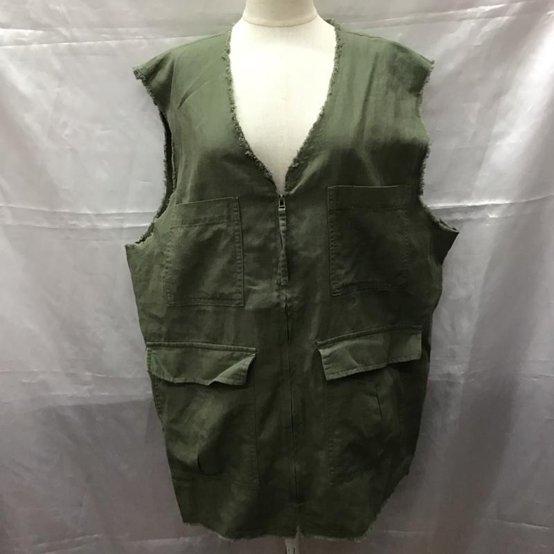 チャオパニック CIAOPANIC ベスト ベスト TYZ1021607A0002 微光沢リネンミリタリーZIPベスト 無地 カーキ / カーキ / レディース USED 古着 中古 10112452