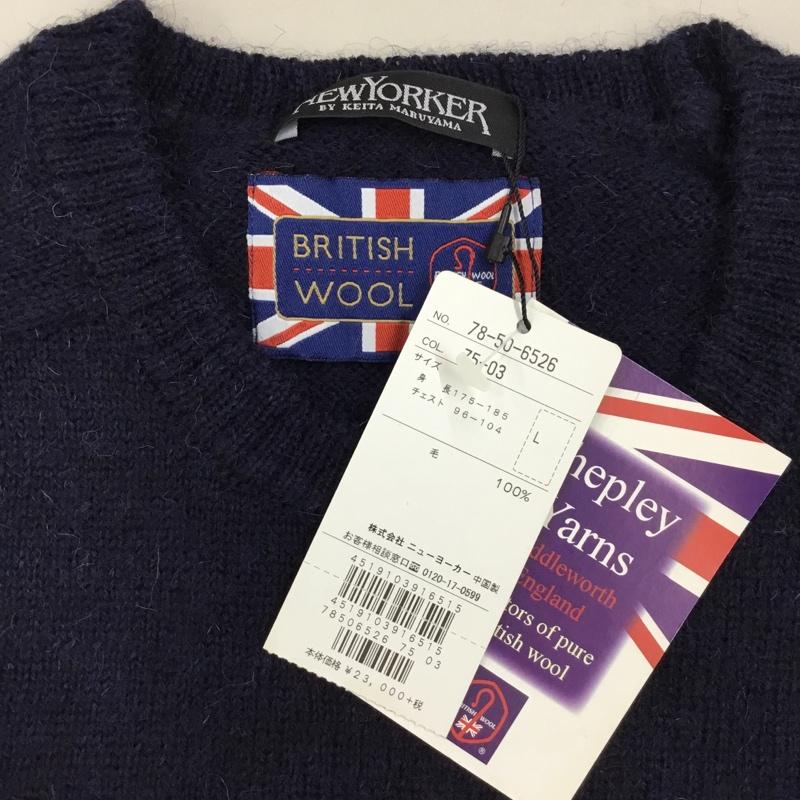 ニューヨーカー NEWYORKER ニット、セーター 長袖 長袖ニットカットソー ニット セーター クルーネックニット L 無地 紺 / ネイビー / メンズ USED 古着 中古 10113367