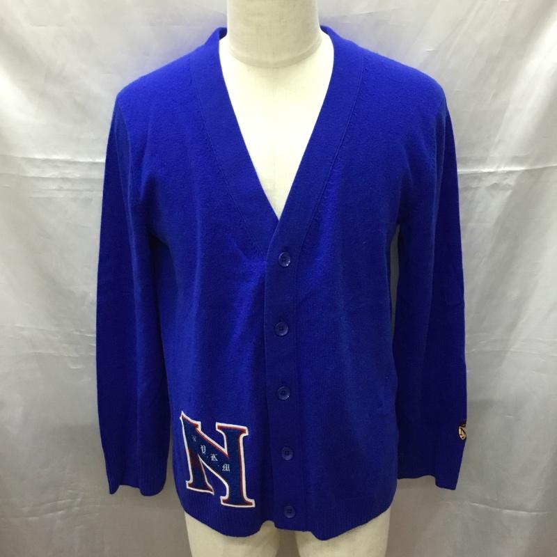 ニューヨーカー NEWYORKER カーディガン 長袖 長袖ニットカーディガン リブニットカーディガン 前ボタン M ロゴ、文字 青 / ブルー / メンズ USED 古着 中古 10113543