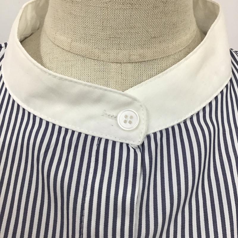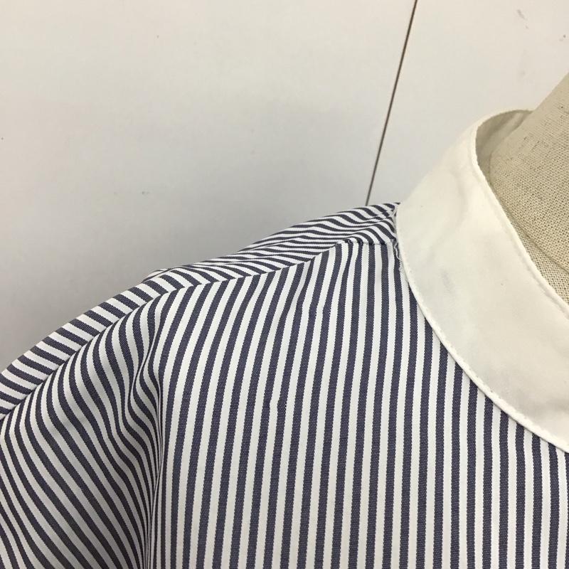 メルロー merlot ワンピース ひざ丈スカート MRWWA0423001 半袖クレリックシャツワンピース FREE ストライプ 白 / ホワイト / X 紺 / ネイビー / レディース USED 古着 中古 10114012