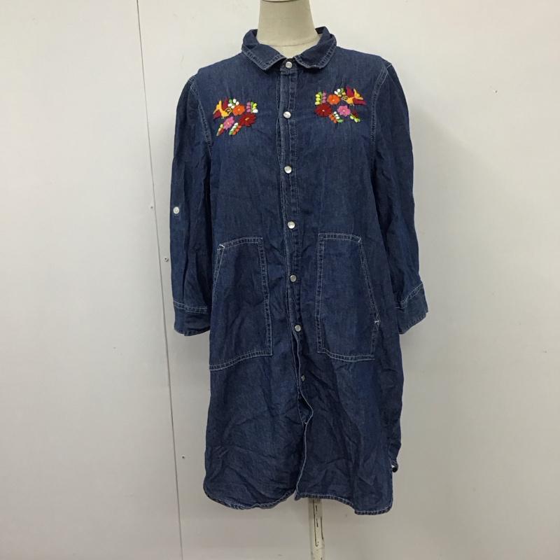 チチカカ TITICACA ワンピース ミニスカート デニムシャツワンピース 七分袖 M 刺繍 インディゴ / インディゴ / レディース USED 古着 中古 10114910