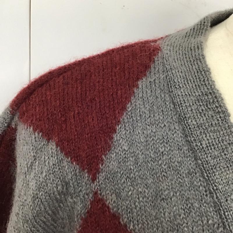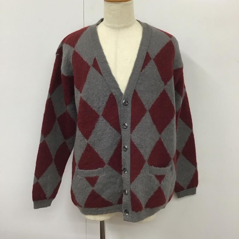 エゴトリッピング EGO TRIPPING カーディガン 長袖 670050 Vネック L 総柄 灰 / グレー / X えんじ / ワインレッド / メンズ USED 古着 中古 10114956