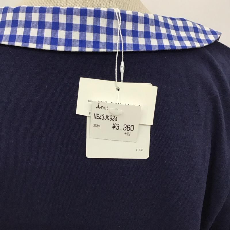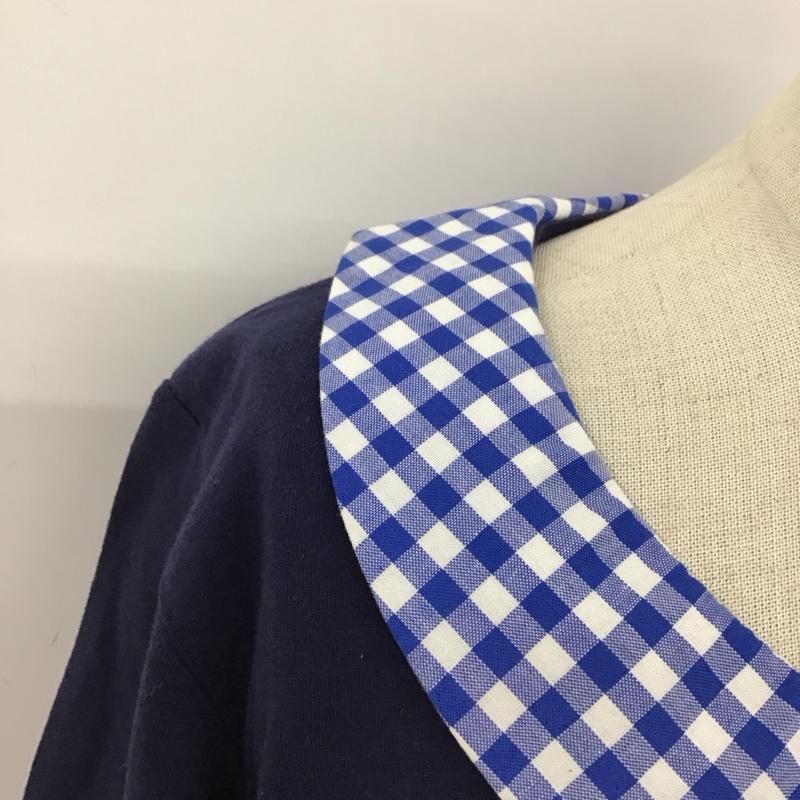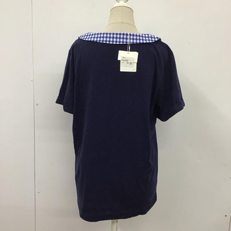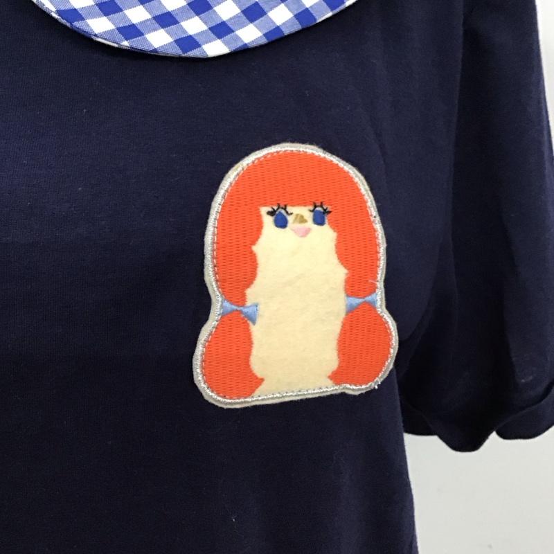 ネ・ネット Ne-net カットソー 半袖 NE43JK934 女の子ワッペン ギンガムチェック 丸襟 タグ付き 2 ワンポイント 紺 / ネイビー / レディース USED 古着 中古 10115501