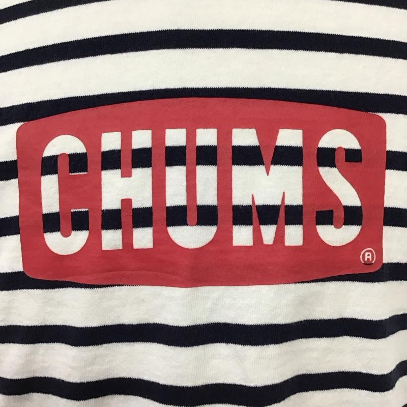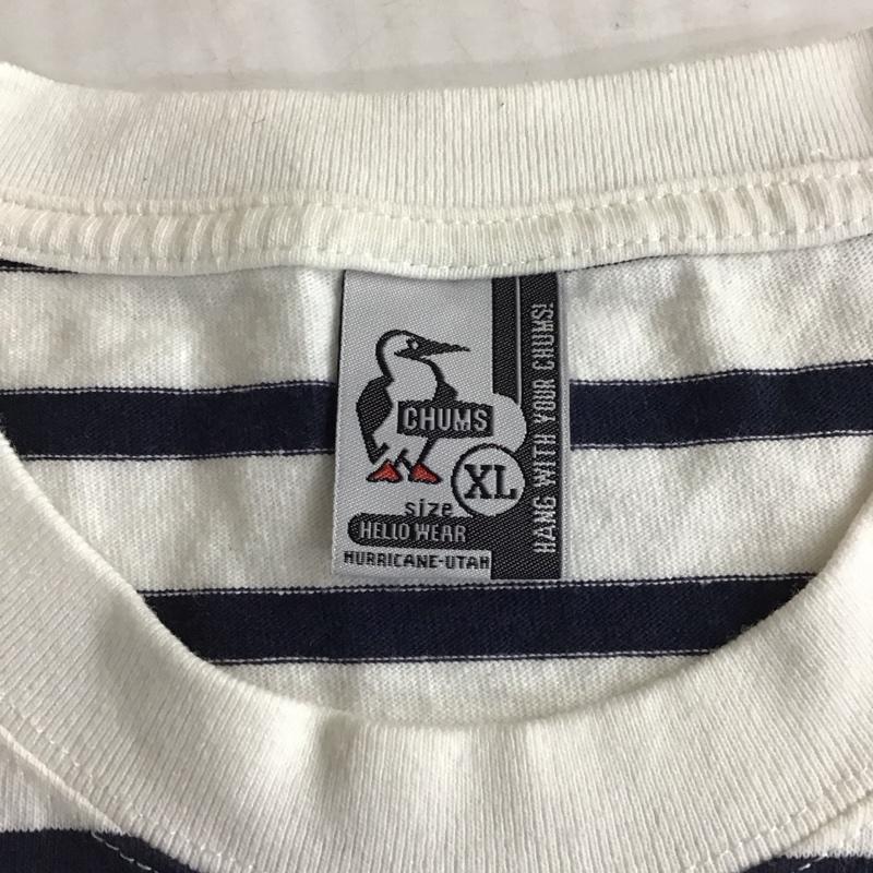 チャムス CHUMS Tシャツ 半袖 半袖カットソー プリントTシャツ クルーネックカットソー XL ボーダー柄 白 / ホワイト / X 紺 / ネイビー / メンズ USED 古着 中古 10115715
