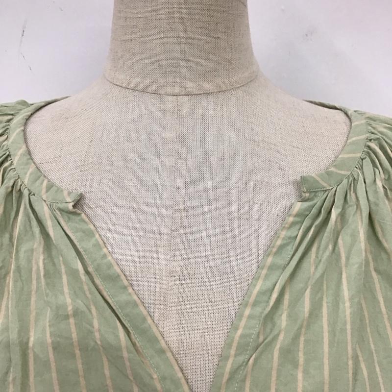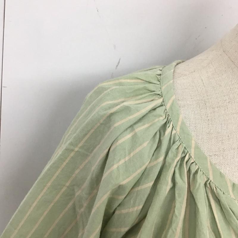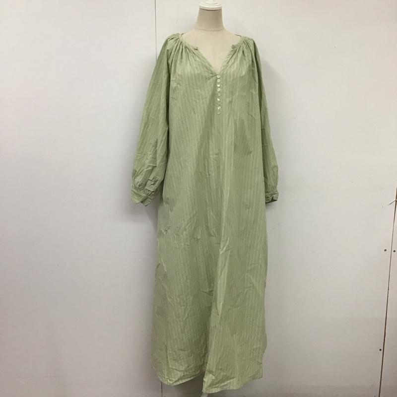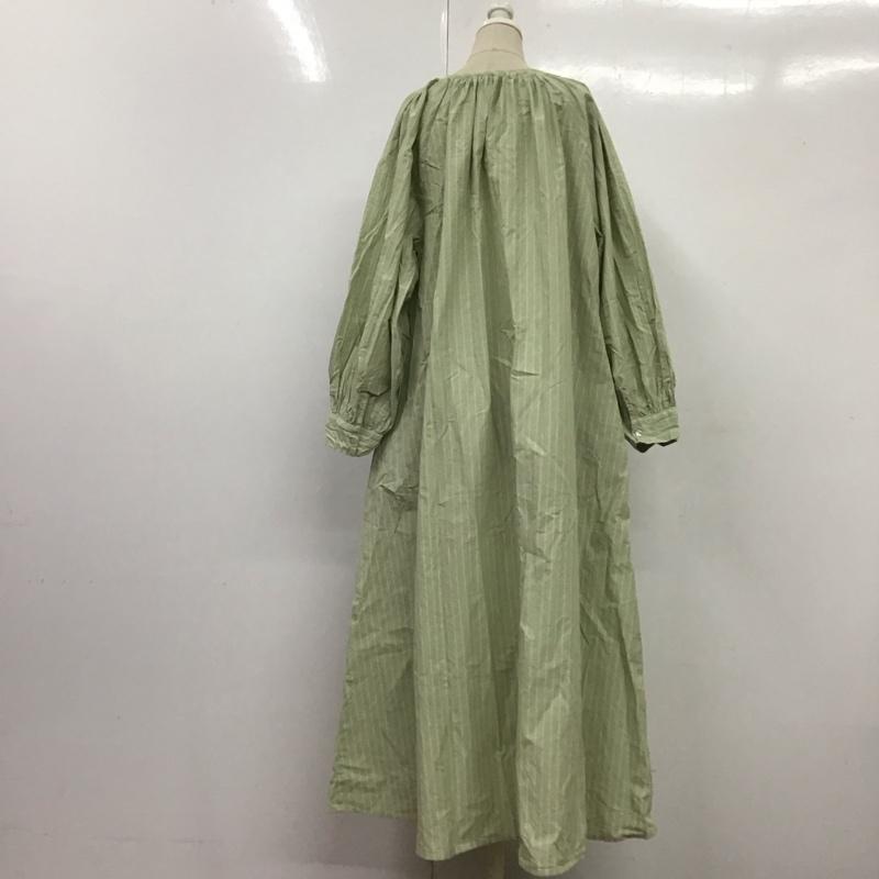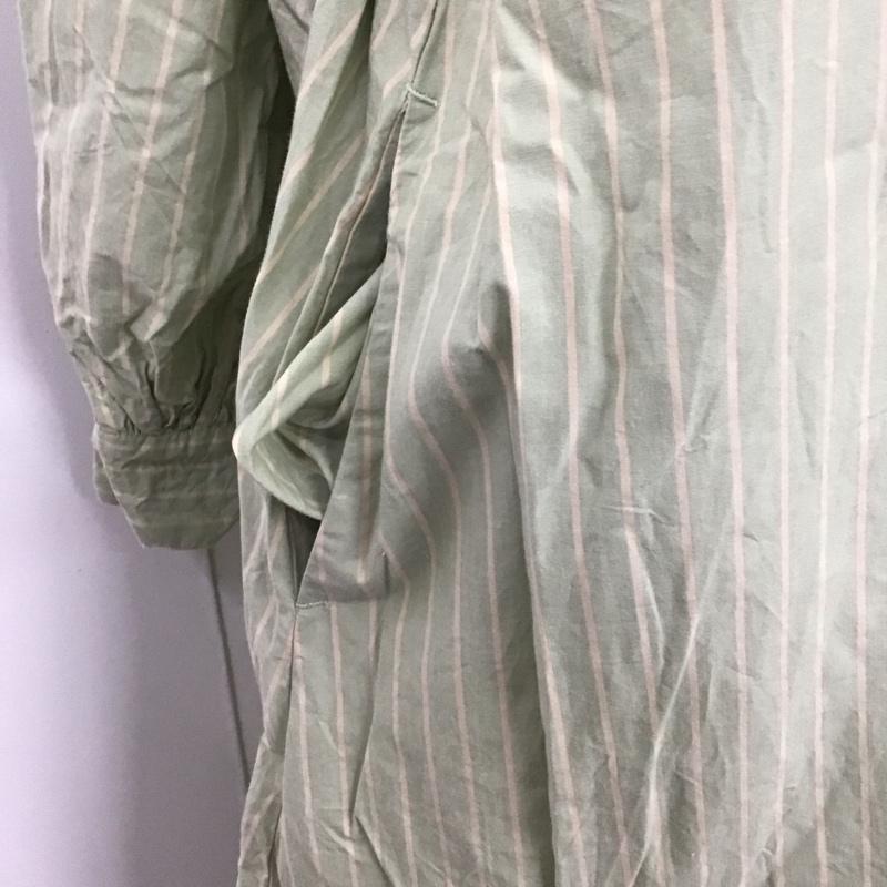 スタディオクリップ studio CLIP ワンピース ロングスカート 長袖シャツワンピース ノーカラーシャツワンピース ロングワンピース FREE ストライプ 緑 / グリーン / レディース USED 古着 中古 10115994