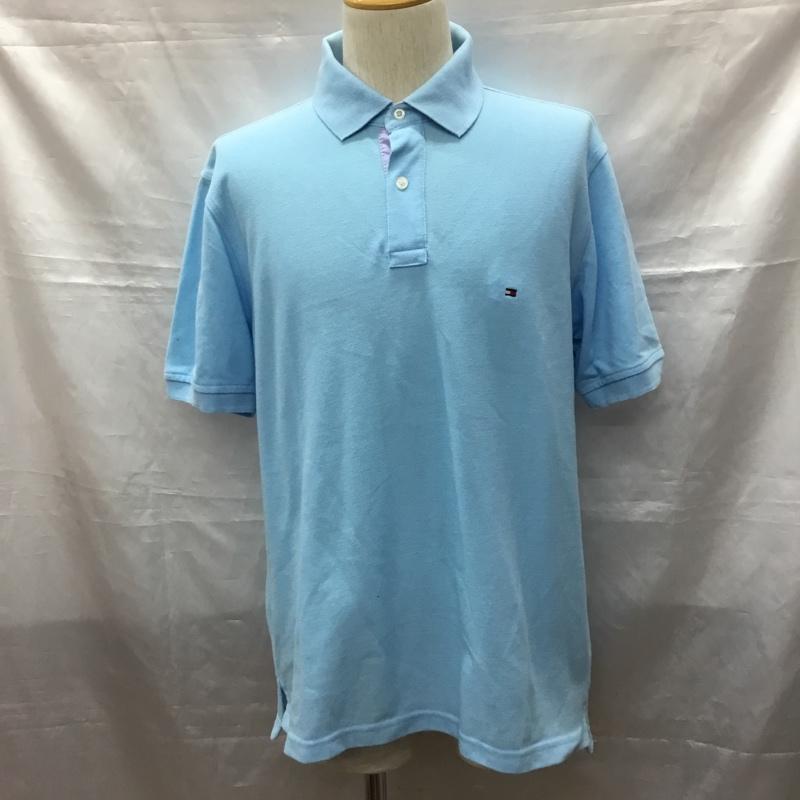 トミーヒルフィガー TOMMY HILFIGER ポロシャツ 半袖 半袖ポロシャツ カラーシャツ 半袖カットソー L ロゴ、文字 水色 / ライトブルー / メンズ USED 古着 中古 10116143