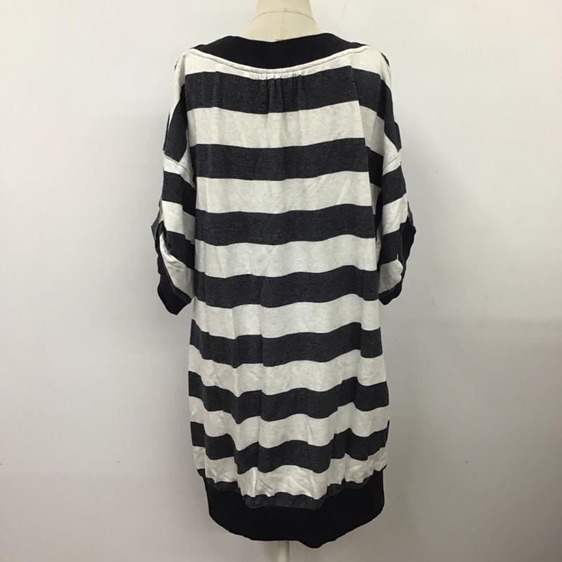 バーバリーブルーレーベル BURBERRY BLUE LABEL ワンピース ひざ丈スカート E1P35-183-03 チュニック 五分袖 ボーダー 38 プリント X ロゴ、文字 灰 / グレー / X 紺 / ネイビー / レディース USED 古着 中古 10116934