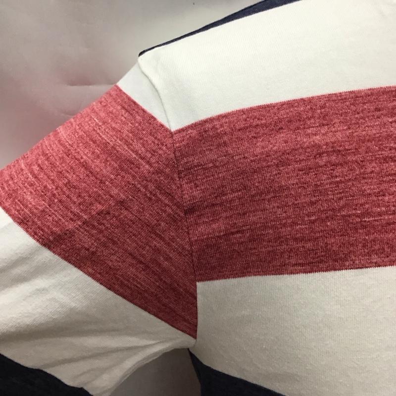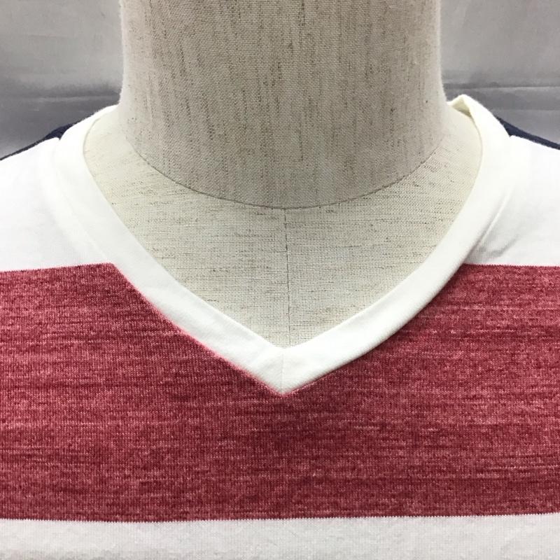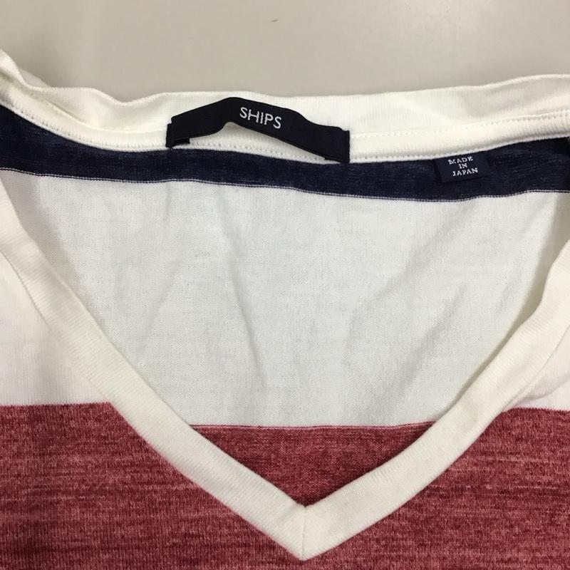 シップス SHIPS Tシャツ 半袖 112-11-5011 Vネック M ボーダー柄 白 / ホワイト / X 赤 / レッド / X 紺 / ネイビー / メンズ USED 古着 中古 10117046