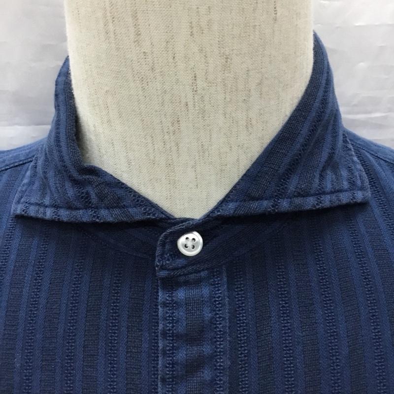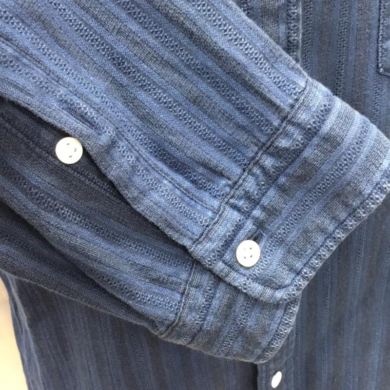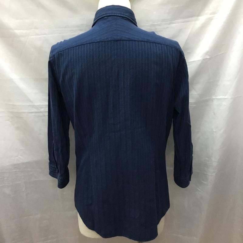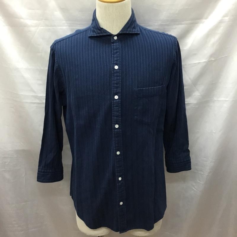 シップス SHIPS シャツ、ブラウス 七分袖 111-32-0021 L ストライプ 紺 / ネイビー / メンズ USED 古着 中古 10117195