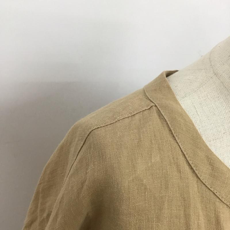 アーガ Aga シャツ、ブラウス 長袖 6910-0270 長袖ブラウス ノーカラーシャツ 無地 ベージュ / ベージュ / レディース USED 古着 中古 10117494
