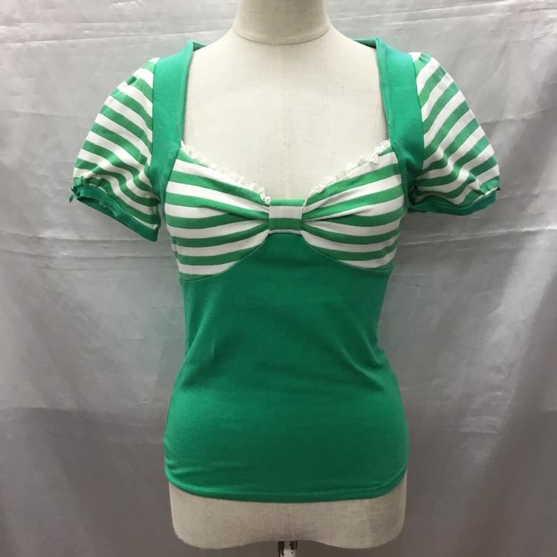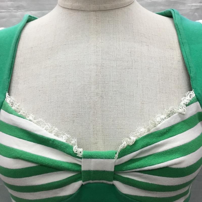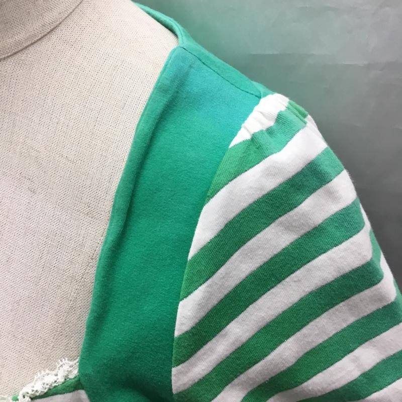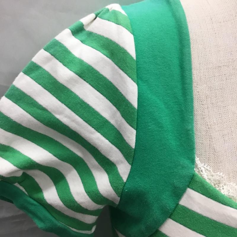 リズリサ LIZ LISA カットソー 半袖 半袖カットソー プリントTシャツ ワイドネックカットソー ボーダー柄 白 / ホワイト / X 緑 / グリーン / レディース USED 古着 中古 10118066