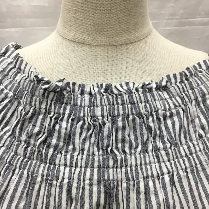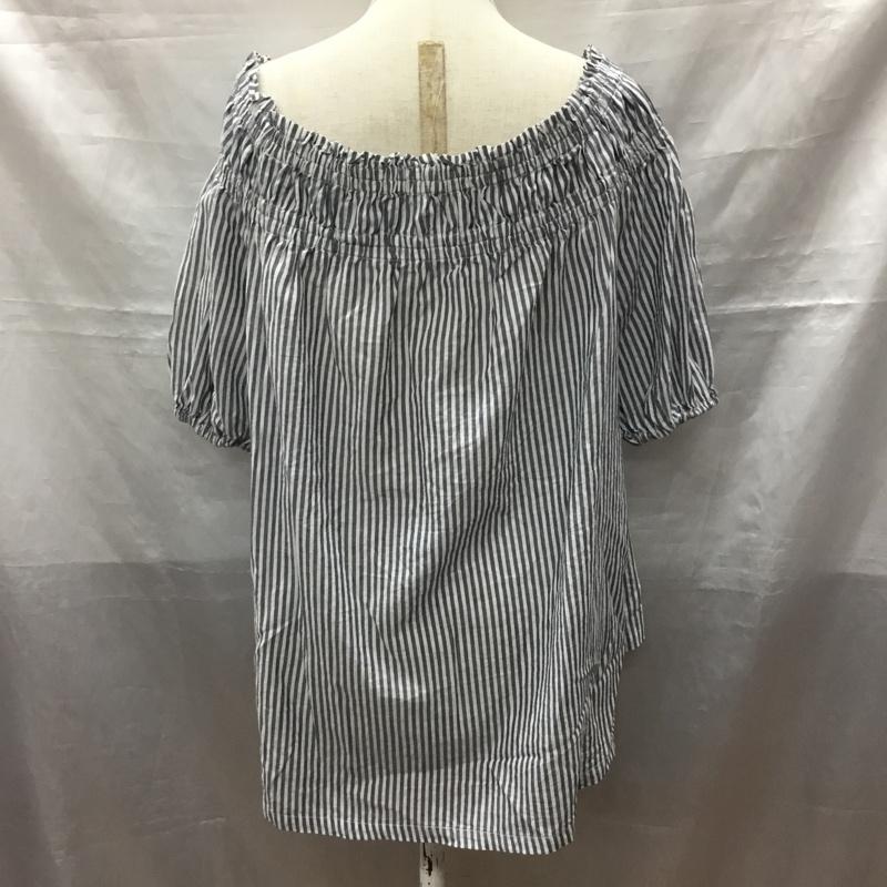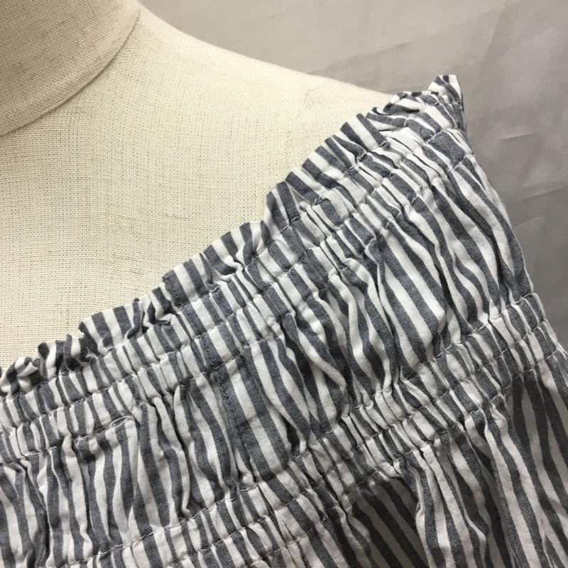 チャオパニックティピー CIAOPANIC TYPY カットソー 半袖 半袖シャツカットソー ノーカラーシャツカットソー フリルシャツ ストライプ 白 / ホワイト / X 灰 / グレー / レディース USED 古着 中古 10118067