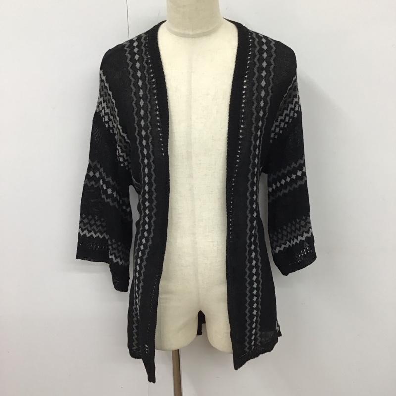 ノーアイディ NO ID. カーディガン 七分袖 852010-432K ネイティブパターンニットフレアスリーブガウン 総柄 黒 / ブラック / X 灰 / グレー / メンズ USED 古着 中古 10118339