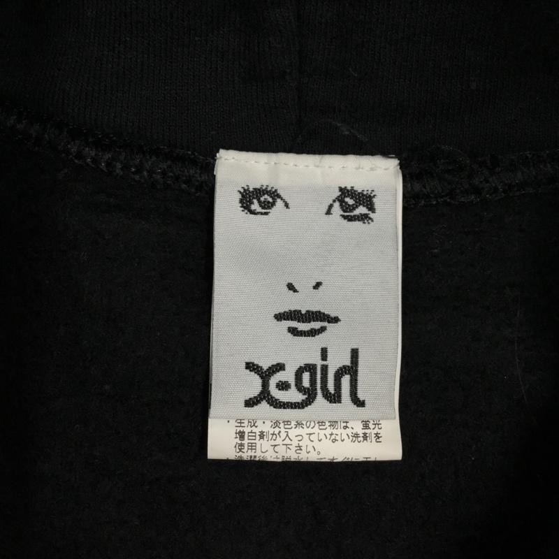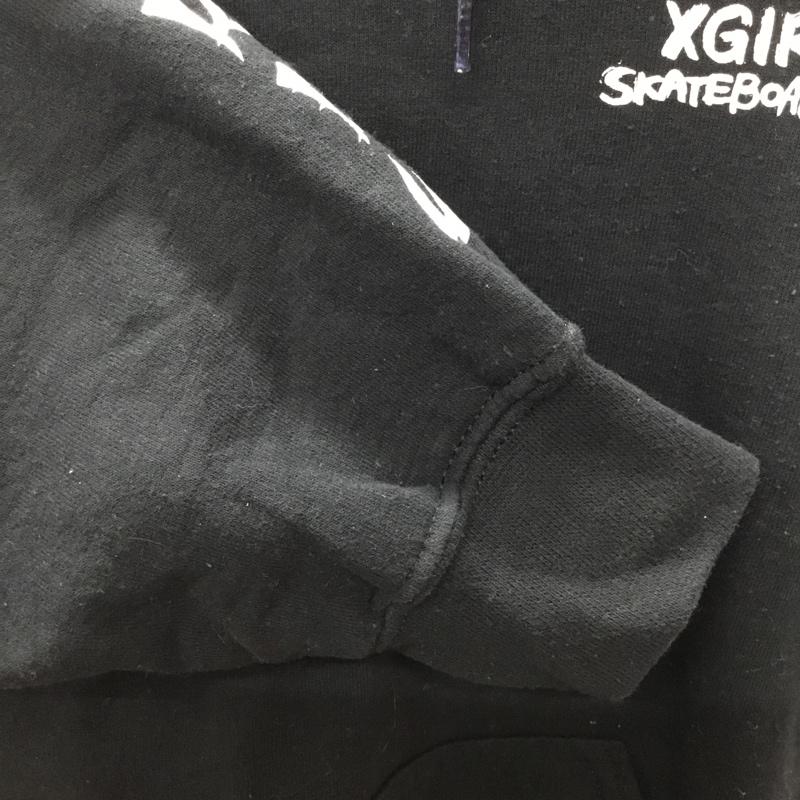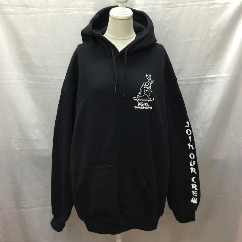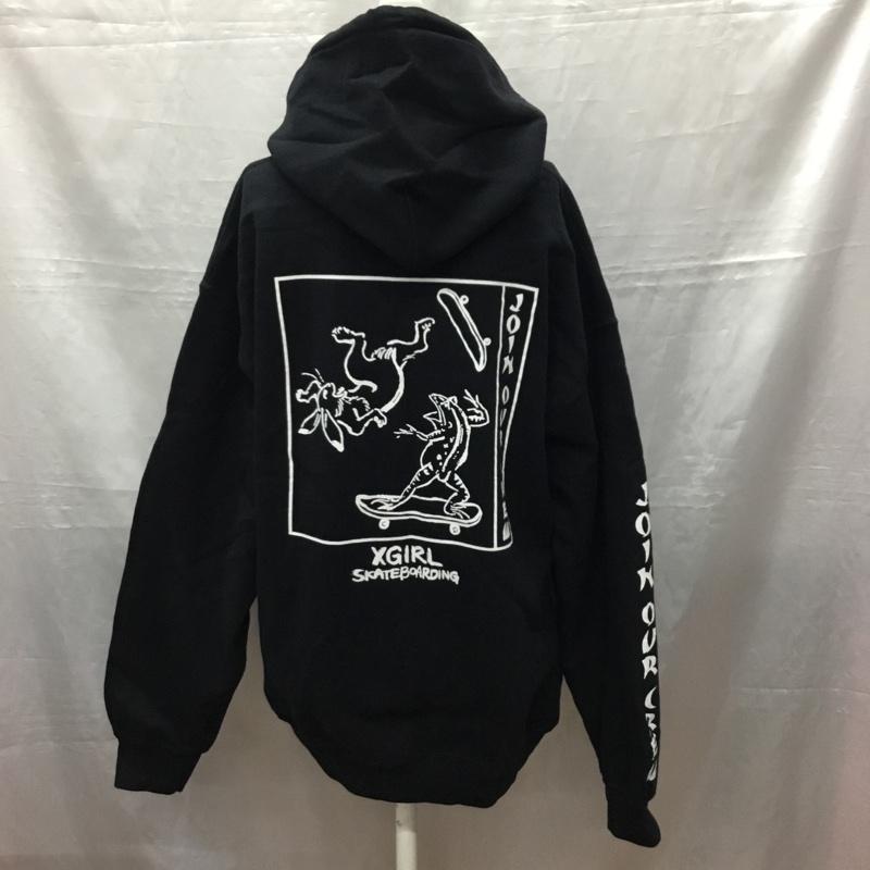 エックスガール X-girl パーカー 長袖 鳥獣戯画 プルオーバー フーディー 裏起毛 2 ロゴ、文字 黒 / ブラック / レディース USED 古着 中古 10118375