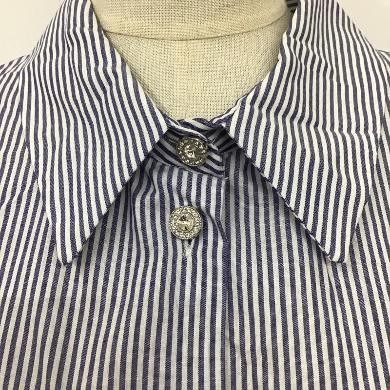 ザラ ZARA シャツ、ブラウス 長袖 8076 807 044 クロップド丈 XS ストライプ 白 / ホワイト / X 紺 / ネイビー / レディース USED 古着 中古 10118830