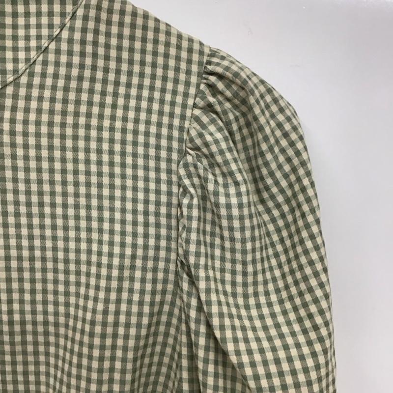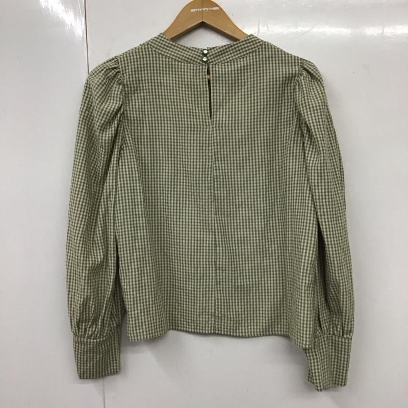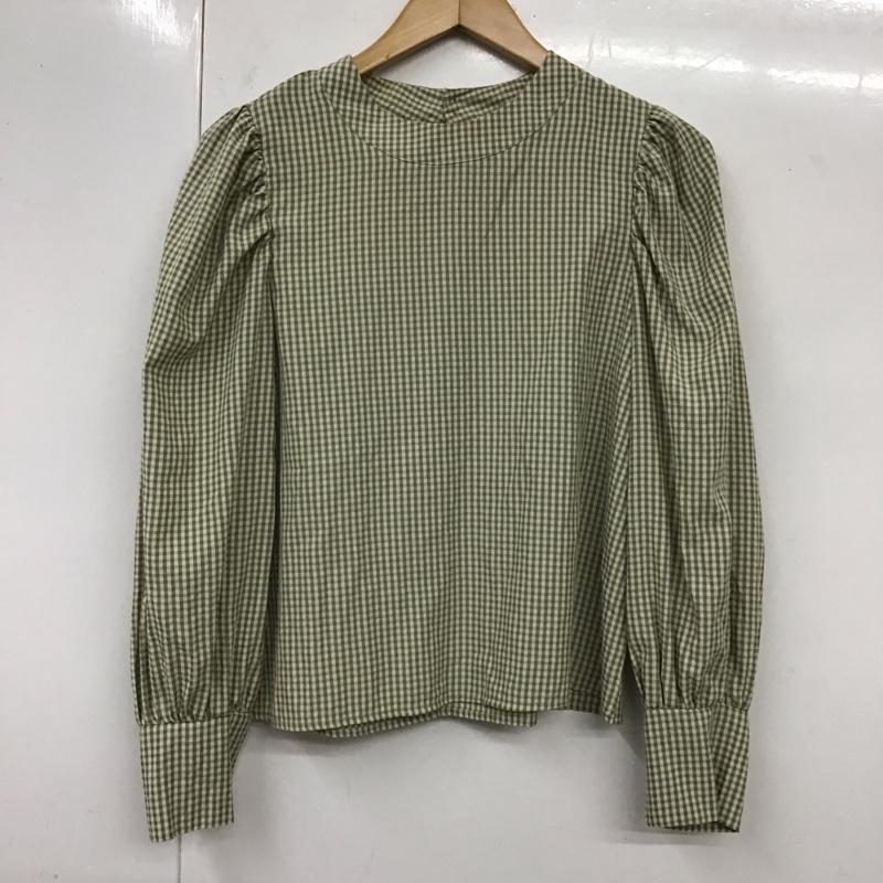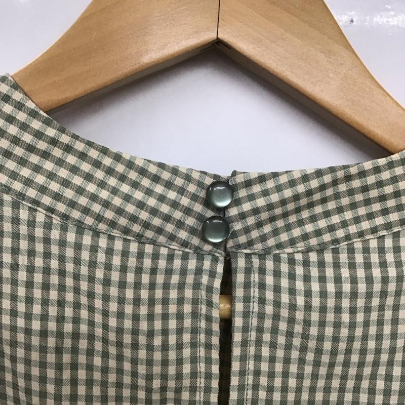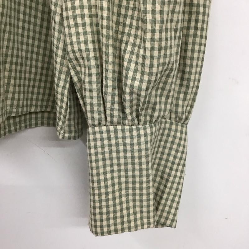 エムズエキサイト EMSEXCITE シャツ、ブラウス 長袖 ep137512b001 ギンガムチェックブラウス 長袖シャツ ノーカラーシャツ FREE チェック 緑 / グリーン / レディース USED 古着 中古 10119076