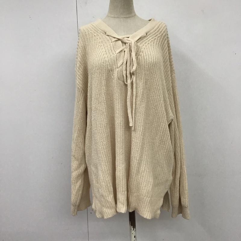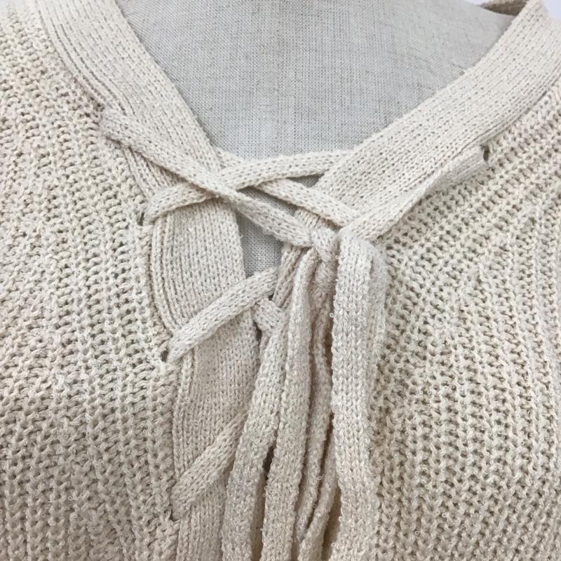 ローリーズファーム LOWRYS FARM ニット、セーター 長袖 lf622030ts 長袖ニットカットソー ニット セーター 編み上げネックニット FREE 無地 オフホワイト / オフホワイト / レディース USED 古着 中古 10119434
