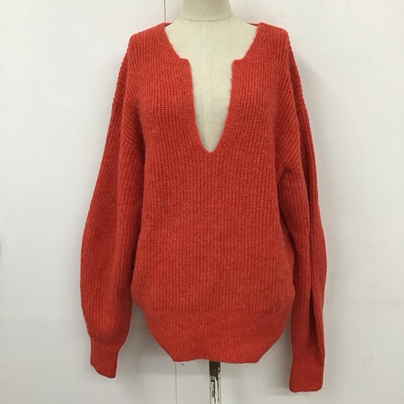 センスオブプレイス SENSEOFPLACE ニット、セーター 長袖 aa17-22b145 コクーンスリーブVネックセーター 長袖ニットカットソー 無地 赤 / レッド / レディース USED 古着 中古 10121043