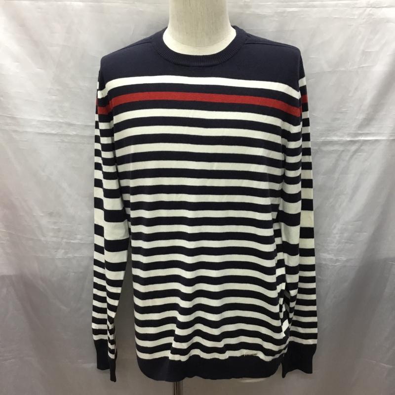 ディーゼル DIESEL ニット、セーター 長袖 クルーネック XL ボーダー柄 白 / ホワイト / X 赤 / レッド / X 紺 / ネイビー / メンズ USED 古着 中古 10121383