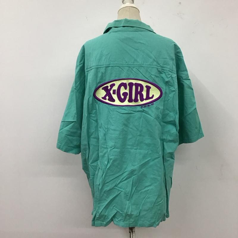 エックスガール X-girl シャツ、ブラウス 半袖 105212014005 CHUBBYOVALLOGOOPENCOLLARSHIRT 半袖シャツ M ロゴ、文字 青 / ブルー / レディース USED 古着 中古 10122529