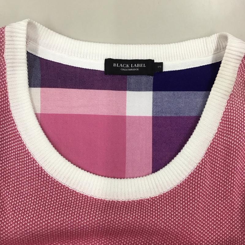 ブラックレーベルクレストブリッジ BLACK LABEL CRESTBRIDGE ニット、セーター 長袖 51N14-313-12 コットンニット 3 無地 桃 / ピンク / メンズ USED 古着 中古 10122603
