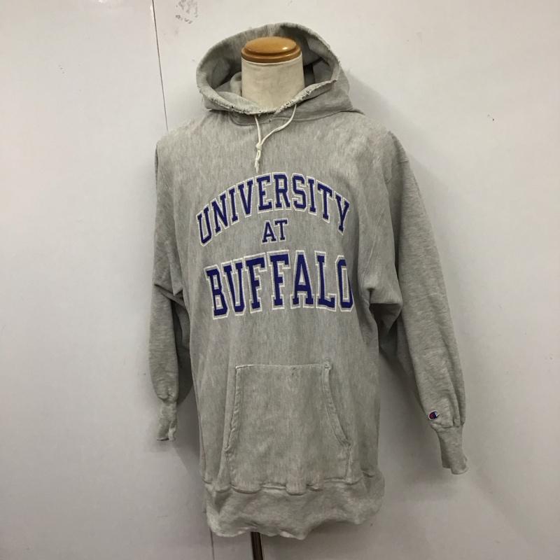 チャンピオン Champion パーカー 長袖 長袖パーカー フード付きパーカー プリントスウェット トレーナー プルオーバーパーカー XL ロゴ、文字 灰 / グレー / メンズ USED 古着 中古 10124667