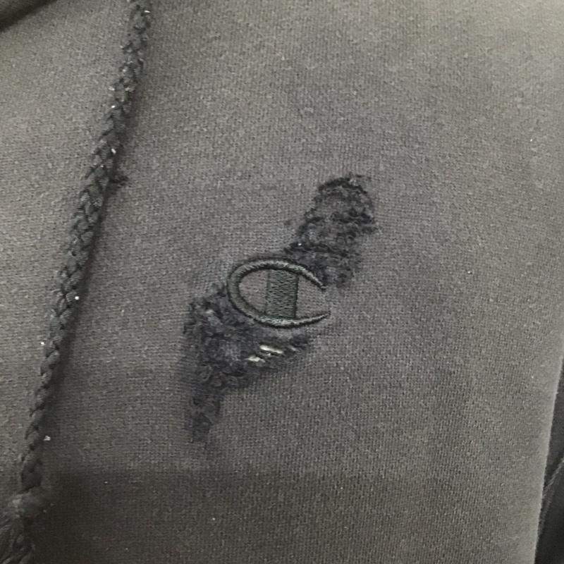 チャンピオン Champion パーカー 長袖 ジップアップパーカー 長袖パーカー フード付きパーカー ロゴ、文字 X ダメージ加工 黒 / ブラック / メンズ USED 古着 中古 10124701