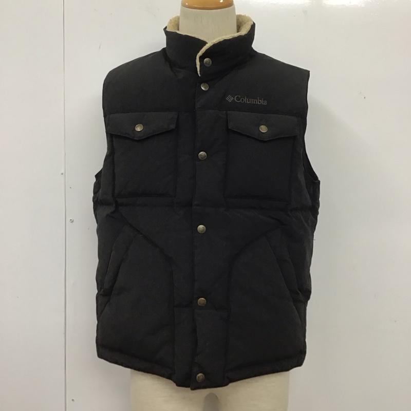 コロンビア Columbia ベスト ベスト ダウンベスト ノースリーブカットソー 前開ボタンジャケット M ロゴ、文字 黒 / ブラック / メンズ USED 古着 中古 10124821