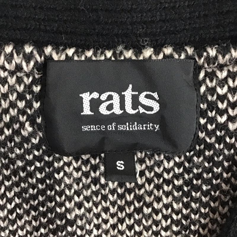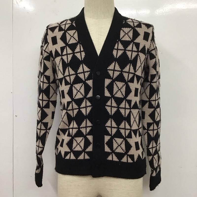 ラッツ RATS カーディガン 長袖 長袖カーディガン 長袖カットソー ノーカラージャケット 前開カーディガン S 総柄 白 / ホワイト / X 黒 / ブラック / メンズ USED 古着 中古 10124839