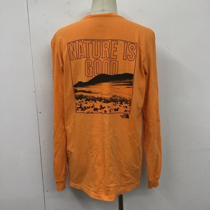 ザノースフェイス THE NORTH FACE カットソー 長袖 長袖カットソー プリントカットソー クルーネック M ロゴ、文字 橙 / オレンジ / メンズ USED 古着 中古 10124891