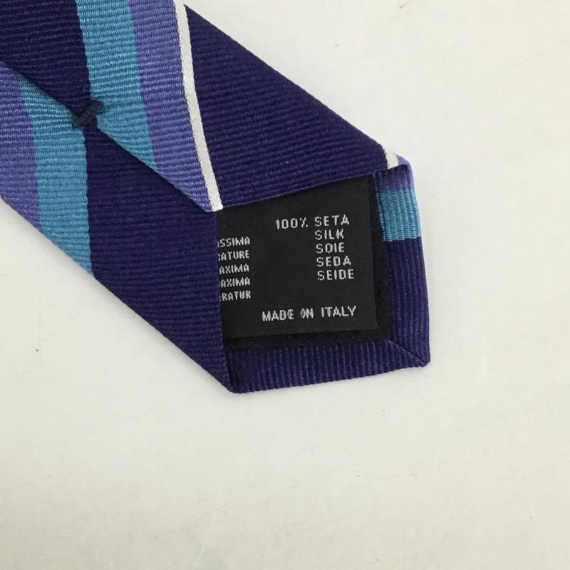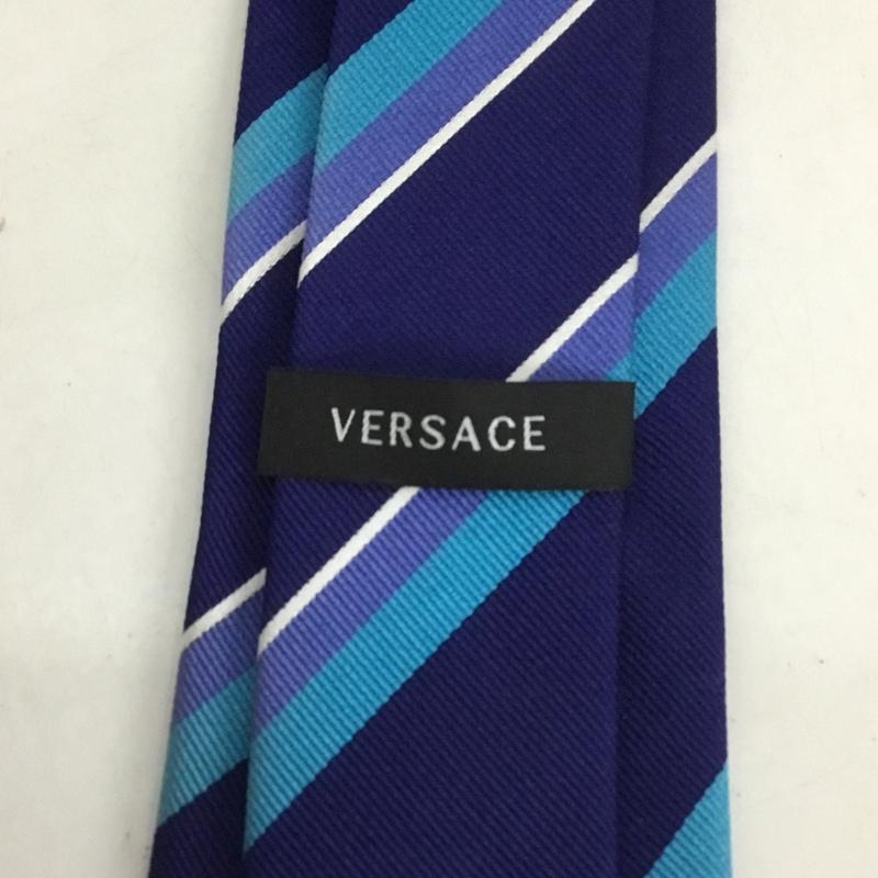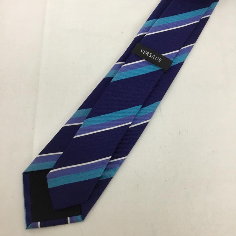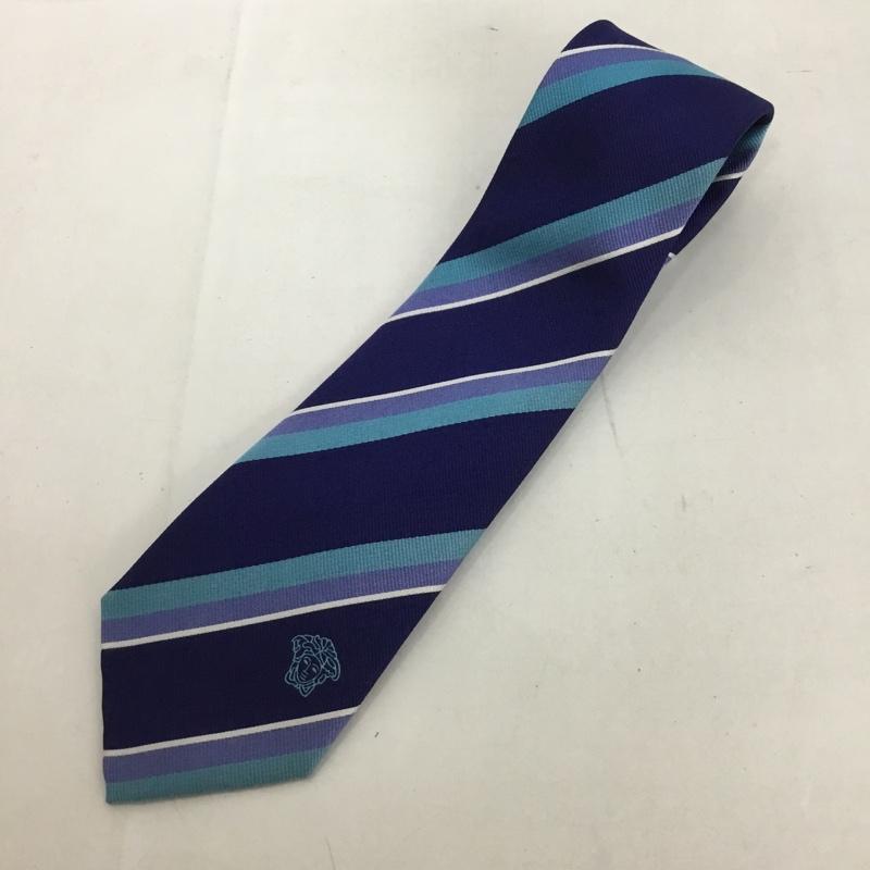 ヴェルサーチ VERSACE ネクタイ ネクタイ シルク ストライプ ワンポイント 紺 / ネイビー / X 白 / ホワイト / X 青 / ブルー / X 水色 / ライトブルー / メンズ USED 古着 中古 10125568