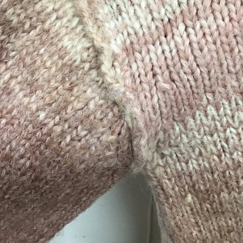 全体的に毛羽立ちがあります。、前身頃の裾にシミがあります。