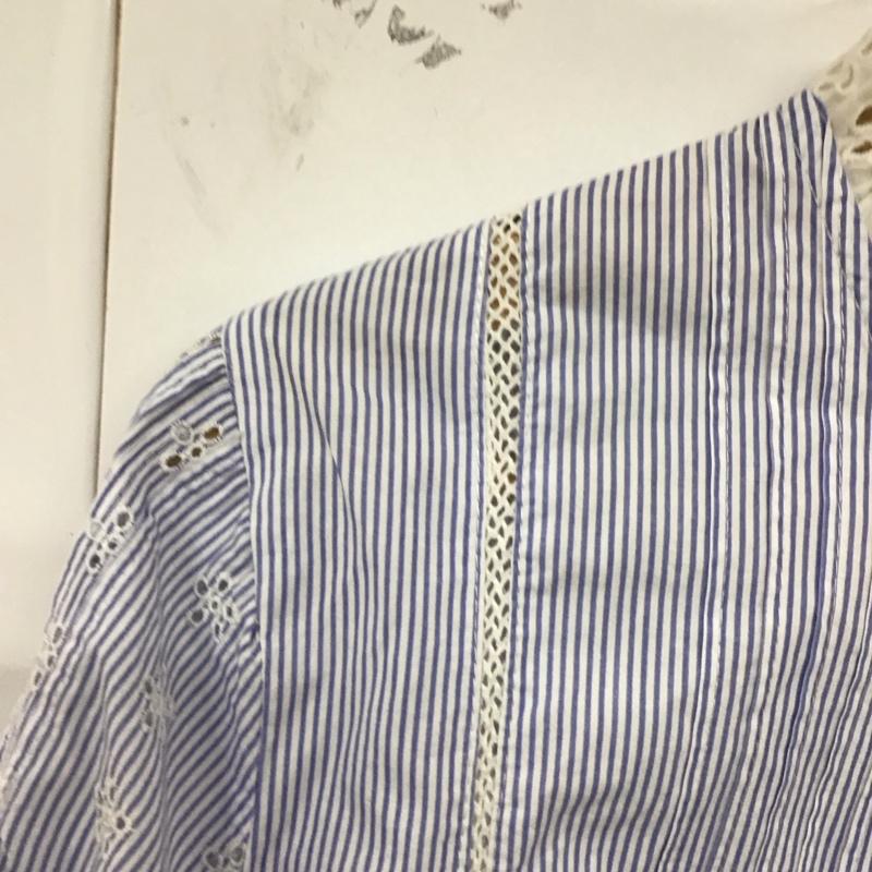 ザラウーマン ZARA WOMAN シャツ、ブラウス 長袖 長袖シャツ ノーカラーシャツ ストライプシャツ L ストライプ 白 / ホワイト / X 水色 / ライトブルー / レディース USED 古着 中古 10129761