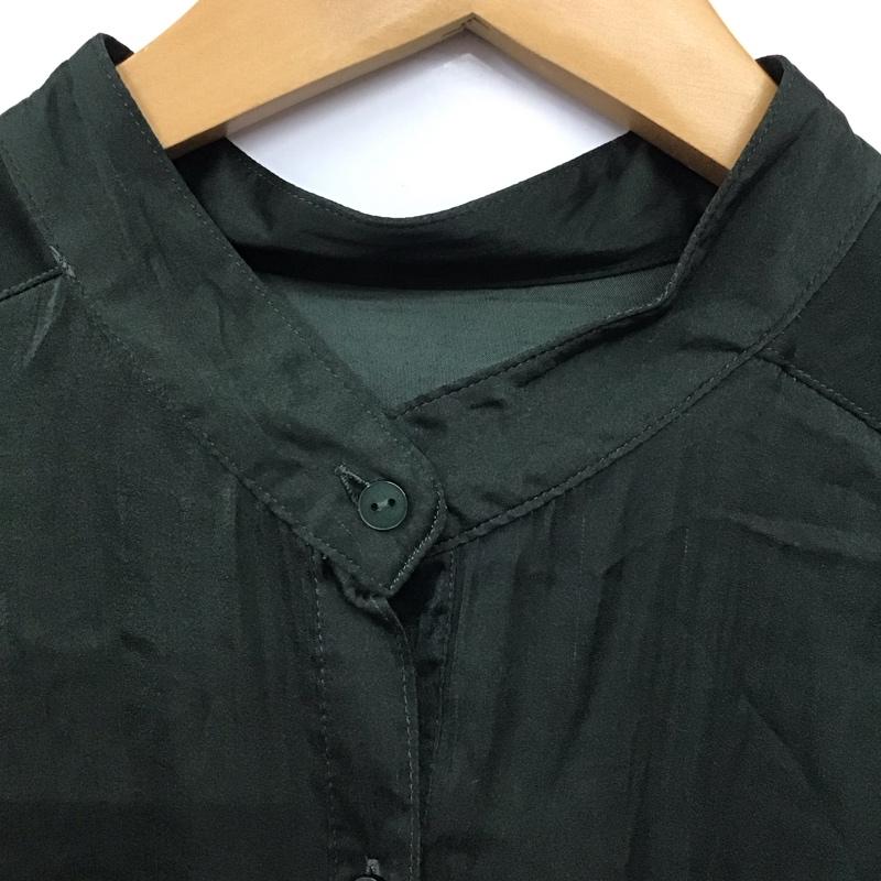 アズールバイマウジー AZUL BY MOUSSY シャツ、ブラウス 長袖 250DAA30-253G BAND COLLAR SHINY LONG SHIRTS M 無地 緑 / グリーン / レディース USED 古着 中古 10130558