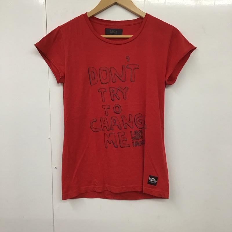 ディーゼル DIESEL Tシャツ 半袖 クルーネック S ロゴ、文字 赤 / レッド / レディース USED 古着 中古 10130601