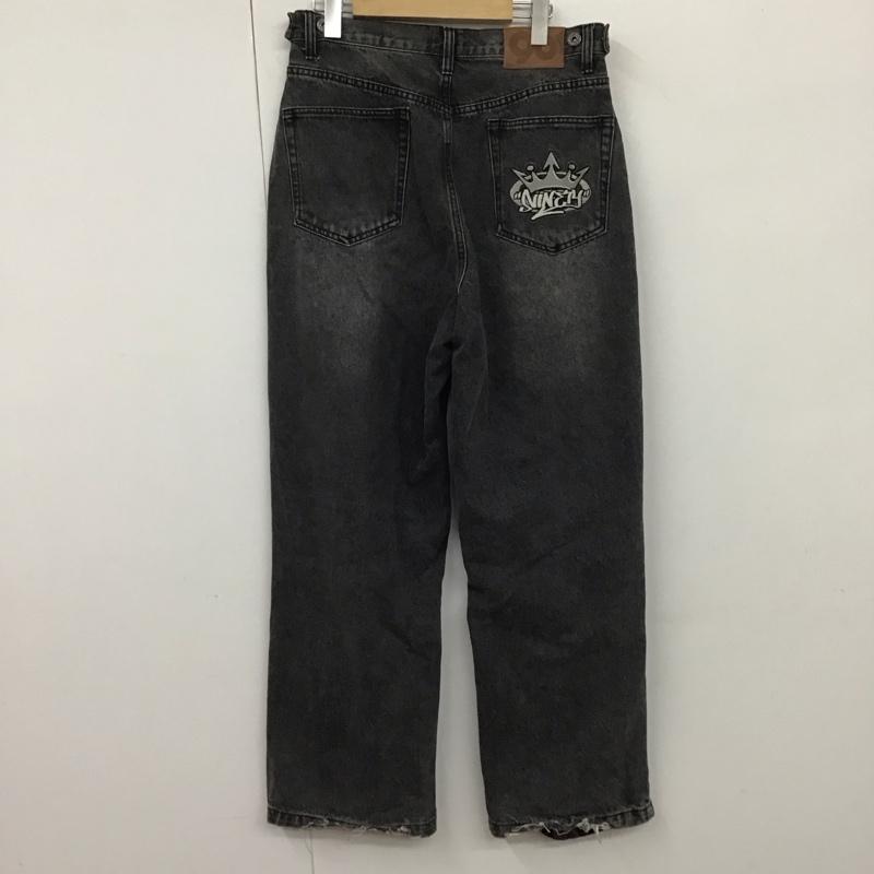 ナインティナインティ 9090 パンツ デニム、ジーンズ デニムパンツ ワイドパンツ カジュアルパンツ L 無地 黒 / ブラック / メンズ USED 古着 中古 10130649