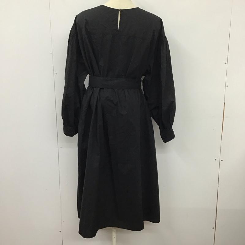 ジムフレックス GYMPHLEX ワンピース ロングスカート 長袖シャツワンピース ノーカラーシャツワンピ パフスリーブ ロゴ、文字 黒 / ブラック / レディース USED 古着 中古 10131762
