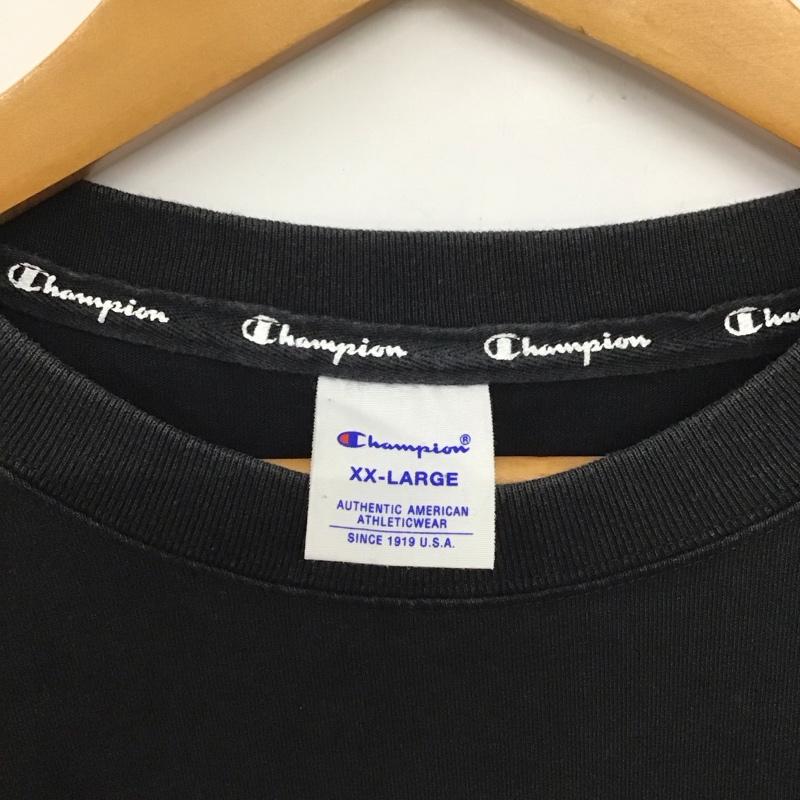 チャンピオン Champion カットソー 長袖 長袖カットソー プリントカットソー クルーネック XXL ロゴ、文字 黒 / ブラック / メンズ USED 古着 中古 10132351