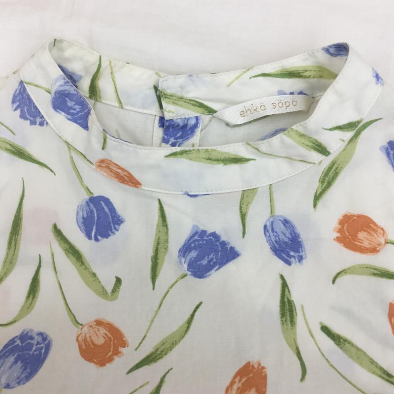 エヘカソポ ehka sopo カットソー 長袖 M 総柄 X 花柄 白 / ホワイト / レディース USED 古着 中古 10133778