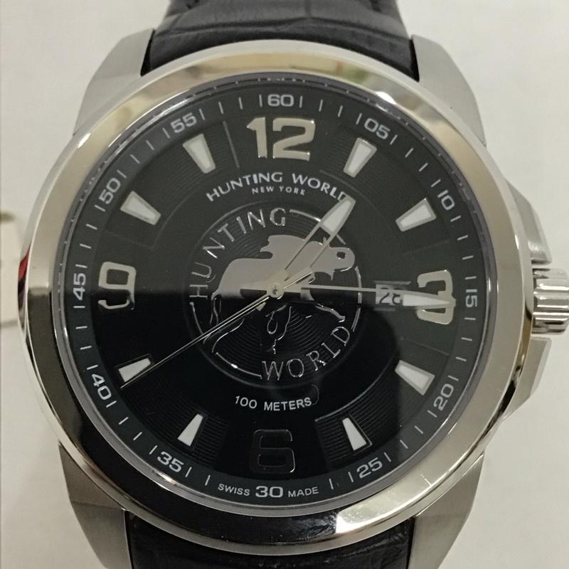ハンティングワールド Hunting World 腕時計 アナログ(クォーツ式) 906-MH レザーバンド ロゴ、文字 黒 / ブラック / メンズ USED 古着 中古 10134043