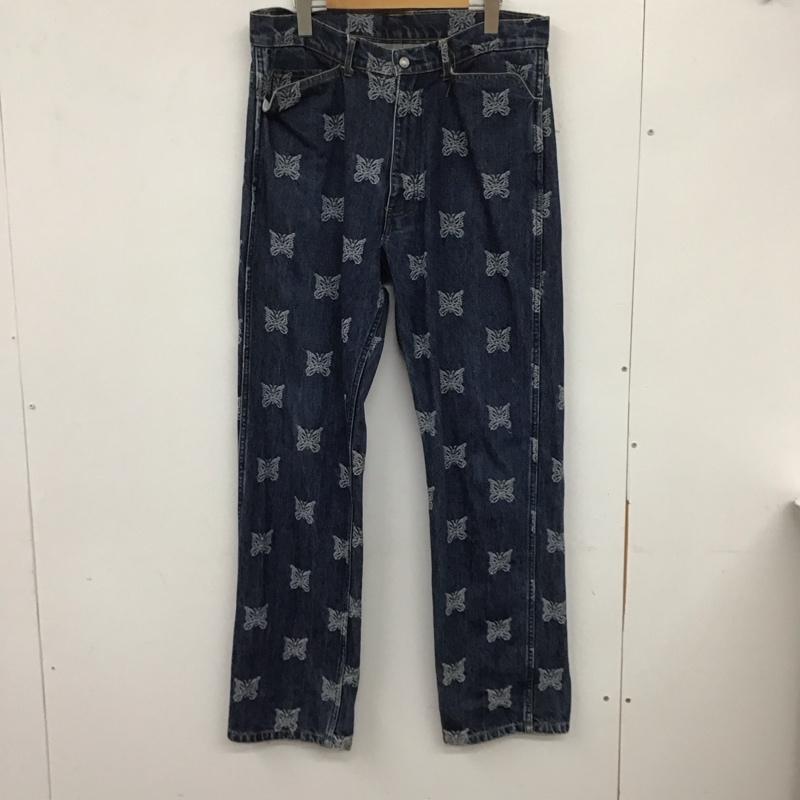 ニードルス Needles パンツ デニム、ジーンズ デニムパンツ ワイドパンツ カジュアルパンツ L ロゴ、文字 インディゴ / インディゴ / メンズ USED 古着 中古 10134712