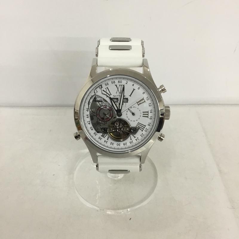 ゾンネ SONNE 腕時計 アナログ(自動巻き) H003 SONNE × HAORI ラバーバンド ロゴ、文字 白 / ホワイト / メンズ USED 古着 中古 10134896